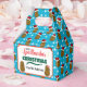 Ett lekfullt och festligt julmönster visar söta potatisar som bär Santahattar mot en snöig blå bakgrund. Det ger en excentrisk och rolig touch till julfirandet. Denna nyckfulla vinterdesign kombinerar ljusa säsongsfärger med glada karaktärsrepetitioner. Det är perfekt för alla som njuter av en rolig och unik julstil. På framsidan finns en etikett med svart, röd och grön festlig text som lyder "Have A Spudtacular Christmas" Under denna text finns två glada bruna potatisar som står mittemot varandra, en med en rosa slinga på huvudet, mellan potatisarna finns en mall för att lägga till egen text för att personifiera.