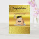 Potatiskaraktären i studenten med ett examensbevis i handen uppe i luft. Med ordspråket. Jag tog examen så nu är jag som smart och saker.
