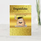 Potatiskaraktären i studenten med ett examensbevis i handen uppe i luft. Med ordspråket. Jag tog examen så nu är jag som smart och saker.