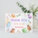 A bright and playful thank you card featuring watercolor pottery pieces, paint brushes, palettes, and colorful art supplies. Designed for a pottery painting or art-themed birthday celebration, this card is perfect for sending a heartfelt note after a creative party.