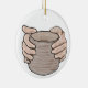 Pottery Skapar Händer visar ett par potter som håller en lerkruka i form.