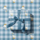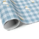Wrap the gift as thoughtfully as what's inside. This powder blue gingham wrapping paper features scattered bow-tied geese across a classic buffalo check linen pattern — charming, cohesive, and instantly recognizable as part of the suite. The muted blue and white palette photographs beautifully and pairs naturally with white ribbon, natural twine, and kraft tags for a styled presentation that looks intentional without any extra effort. Pairs with the matching tissue paper, gift bag, invitation, thank you card, welcome sign, napkins, plates, and coasters for a fully coordinated baby shower from the gift table to the party spread.