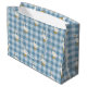 Arrive at the shower with a gift bag that needs no explanation. This powder blue gingham gift bag features scattered bow-tied geese across a classic buffalo check linen pattern — charming, cohesive, and instantly part of the suite. The muted blue and white palette pairs naturally with white tissue paper, natural twine, and kraft tags for a presentation that looks styled without any extra effort. Pairs with the matching wrapping paper, tissue paper, favor tags, invitation, and thank you card for a fully coordinated baby shower from the gift table to the party spread.