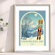 Affisch från en underbar skidresa till det vackra bergsområdet Powder Mountain, Eden, Utah! Denna lilla affisch har en båge med ett fantastiskt blågrått bergslandskap och retro-skidor i en orange tribal-mönster i förgrunden. Resten är i en vacker ljusblå ton med ortnamnet skrivet i en modern font. Designen är en vacker kombination av retro och modernt, och jag hoppas du njuter av den!