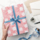 Discover our "Powdered Rose Beauty" wrapping paper. This pattern features a repeating motif of crisp white flowers and delicate foliage, set against a dusty rose or warm powder pink background.
