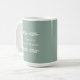 Det här tjocka kaffet på 15 oz mugg har uttrycket "Praktiskt mindhet" med en enkel svart textdesign på en dammig grönt bakgrund med elfenbenst grenar.