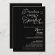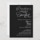 Praktik gör perfekter! Låt oss vår favoritpars repetitionskväll före stordagen med den här elegantens roligt, en lekfull och enkel repetitionsmiddagsinbjudan med roligtens skript i vitt på svart.