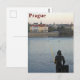 Statue on Charles Bridge (mest Karlův), med floden Vltava i bakgrunden. Prag, Tjeckien
