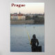 Statue on Charles Bridge (mest Karlův), med floden Vltava i bakgrunden. Prag, Tjeckien