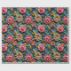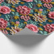 Ett Färgrikt Präglat Blommigt Inpackningspapper Med Rosa Och Beige Blommor På En Grön Bakgrund För Födelsedagar Eller Morsdagpresenter