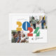 Fet typografi i kombination med starka färger gör detta nyårskort med två bilder roligt och lekfullt.