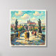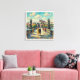 Journey into the enchanting soul of Prague through this mesmerizing impressionist masterpiece that captures the City of Spires in all its romantic glory and timeless beauty. The iconic Charles Bridge stretches gracefully across the composition, its ancient stone arches guarded by majestic bronze statues rendered in deep tones that seem to watch over centuries of human stories. Beyond the bridge, Prague's legendary skyline rises majestically—soaring Gothic spires, the magnificent St. Vitus Cathedral, and terracotta-roofed buildings clustered in warm earth tones beneath a luminous sky painted in brilliant turquoises, soft yellows, and wispy cream clouds that swirl with artistic passion. Elegant figures in vintage attire stroll across the sun-warmed bridge—women in jewel-toned dresses (golden yellow, sapphire blue, ruby red) alongside men in crisp suits, their colorful silhouettes creating a human tapestry of romance and cultural sophistication. The Vltava River sparkles below in shades of turquoise and blue while lush green foliage frames the architectural splendor. Vintage street lamps glow softly along the bridge's edges, adding nostalgic warmth to this timeless tableau. The artist's passionate, textured brushwork infuses every element with movement and emotion: swirling skies that seem alive with possibility, thick impasto strokes that create dramatic depth, and shadows dancing across ancient stones. Perfect for those who cherish Central European heritage, Prague's architectural magic, vintage aesthetics, romantic city scenes, and art that celebrates the intersection of history and living culture, this stretched canvas transforms your space into an eternal portal to Prague's most enchanting moments