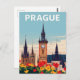 A charming, retro-style illustration capturing the iconic skyline of Prague's Old Town Square, Czech Republic. Features the historic astronomical clock tower and surrounding Gothic architecture, set against a bright sky and vibrant foreground of red and yellow tulips. This stylish vintage poster art is perfect for travel lovers, home decor, or as a unique gift for someone who cherishes the beauty of Czechia.
