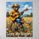 Den här fängslande målningen har en björn, en verklig ängsgående utförare med en brandkåpa och solglasögon, djupt nedsänkt i en akustisk gitarr vid en gammal vagnshjul. En fält av färgstarka vilda blommor omger honom, och en burk av honungen ligger nära under ett ljust, delvis grumligt himmel. Det pulserande, texturerade penselverket skapar en livlig och upplivande atmosfär, som perfekt förmedlar "Kärlek My Honung"-synen på denna unika landsbygdskonsert.