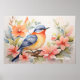 Praktfull akvarell fågel blomsterkonst poster