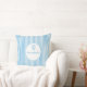 Praktfull blå-vit randig monogram med nyckfull prä kudde
