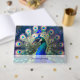 Praktfull påfågel med turkos och guld fjäderdräkt gästböcker