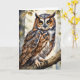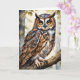 Vacker färgrik träduggla som vilar i träden på det här tomma vykortet.
