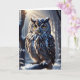 Vacker uggla som vilar i träden efter en snöstorm på detta tomma vykort.