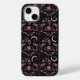 Ett underbart mönster av ömtåliga nattfjärilar, blommor och månar i en mörk färgpalett av svart, rosa, grönt och blått.