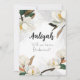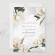 Denna design, med eleganta magnolior med ömtåliga vita och krämfärgade kronblad accentuerade av rika gröna blad och subtila gyllene fläckar, skapar en lugn och sofistikerad atmosfär. Skapa en minnesvärd inledning till din speciella dag med dessa kort på Zazzle. Den milda blomdesignen med sin touch av guld lovar en bröllpsfest fylld av elegans och grace.