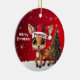 Prancer! Celebrate the holiday season with this festive round ceramic red ornament featuring an endearing woodland forest animal cartoon graphic of a cute baby reindeer wearing a Santa hat, and Merry Christmas written in white. Perfect deer with antlers for decorating your tree or as a thoughtful gift, this whimsical doe decor makes a cherished keepsake for years to come. Customize by changing the text, the font, the font color, or remove the text. You can even transfer this design onto other products. Enjoy this design your way! Check out ForestBabies Xmas Deer Collection for matching decorations. 🎄🩌 Dimensions: Diameter: 2.87". Thickness: 0.156". Weight: 1.4 oz. Made of white porcelain. Full-color, full-bleed printing. Printing on both sides. Thread does not come attached/tied.