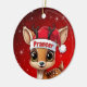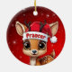 Prancer! Celebrate the holiday season with this festive round ceramic red ornament featuring an endearing woodland forest animal cartoon graphic of a cute baby reindeer wearing a Santa hat. Perfect deer with antlers for decorating your tree or as a thoughtful gift, this whimsical doe decor makes a cherished keepsake for years to come. Customize by changing the text, the font, the font color, or remove the text. You can even transfer this design onto other products. Enjoy this design your way! Check out ForestBabies Xmas Deer Collection for matching decorations. 🎄🩌 Dimensions: Diameter: 2.87". Thickness: 0.156". Weight: 1.4 oz. Made of white porcelain. Full-color, full-bleed printing. Printing on both sides. Thread does not come attached/tied.