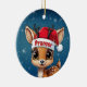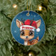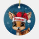 Prancer! Celebrate the holiday season with this festive round ceramic red ornament featuring an endearing woodland forest animal cartoon graphic of a cute baby reindeer wearing a Santa hat. Perfect deer with antlers for decorating your tree or as a thoughtful gift, this whimsical doe decor makes a cherished keepsake for years to come. Customize by changing the text, the font, the font color, or remove the text. You can even transfer this design onto other products. Enjoy this design your way! 🎄🩌 Dimensions: Diameter: 2.87". Thickness: 0.156". Weight: 1.4 oz. Made of white porcelain. Full-color, full-bleed printing. Printing on both sides. Thread does not come attached/tied.