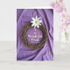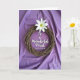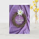 Denna kort är designad med en rustik cirkulär krans flätad av naturliga kvistar och sätter en jordnära fokus mot mjukt draperad lavendelfärgad tyg. Nära toppen av kransen sitter en ensam vit blomma med släta kronblad som öppnar sig mot en blekgrön mitt med små gula ståndare, som en mjuk nick av tillgivenhet. Ljusinsatsen är mjuk och diffus och skapar milda skuggor i vecken som får bakgrunden att kännas lugn och intim, som om den var tänkt att hållas nära. Inuti kransens öppna mitt visas meddelandet ”To a Wonderful Priest Happy Easter” i elegant vit text, centrerad och lätt att läsa. Den vita texten ekar av blomman ovan och knyter samman designen med en tyst, omtänksam ton. Naturliga texturer kontrasterar fint - de grova kvistarna, den silkeslena blomman och det flödande tyget - och tillför en öm, genomtänkt stämning 🌷. En k