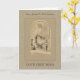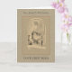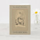 Detta är ett vackert kort för Prästvigning, Första Mässa eller Jubileum med en specialdesignad bild på framsidan där prästen håller Eukaristin vid altaret och Jesus ser ner från ovan. En ljusbrun spets utgör bakgrund. Alla teckensnitt och texter kan ändras.