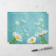 Prästkragar på blå bakgrund, vacker vår- och sommarblommig design.