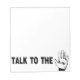 Prata med handen anteckningsblock