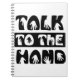Prata med handen anteckningsbok med spiral