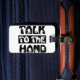 Prata med handen bagagebricka