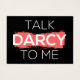 "Prata Darcy med mig" fras som inspirerats av Jane Australiens karaktär Darcy från bok-Pridet och fördomsrätt.