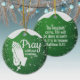 Pray without ceasing, Religious Holiday Ceramic Ornament with green sparkle glistening, Praying hands capturing the Christmas magic and joy of a Christian season. On the back, the sacred writing, Matthew 6:10 "Thy kingdom come. Thy will be done in earth, as it is in heaven" all in customizable text, ready for you create your favorite bible verse in a festive devotional design hanging decorations. Order your Christ teachings testaments today and make your custom inspirational doctrine keepsakes extra special with divine passages of the word of our Lord! 🎄⛪️