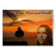 Snygg solnedgång och fiskmås tillsammans med president Obama som ber och tror på en vacker oceansolnedgång.