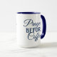 Den här roligtens vita tvåtonshandtag i mugg har ett royal marint blått handtag och inuti, med den lekande frasen "Prayers before Coffee" i en blandning av skript och serif typsnitt. En underbar gåva till kristna som kärlek sitt kaffe, ibland mer än sin bönetid! Perfekt att börja din dag med ett leende och en påminnelse till behållans tro först, även om kaffe kommer först.