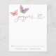 Se till att dina duschgäster fyller ut de här berömvärda böner för baby-kort vid din babydusch. En illustration av lila och rosa fjärilar som matchar vår barnduschsamling i Butterfly Önskemål. Anpassa Mamma till namn och duschdatum.