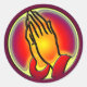 PRAYING HÄNDER RUNT KLISTERMÄRKE