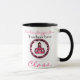 En mugg för Pre-Dagis lärare som presenterar logotypen av den rosa Schoolhouseinsidan som en cirkla formad zebra tryckram med rosor klipper. Text läser "Pre-Dagis lärare har att klassificera.",