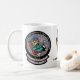 Platta till, vit den 15 uns muggen med internationellt brödraskap av den sjö- logotypen för flygingenjörer (IBNFE) på en sida och 'RIKTIGA PREFLIGHT STARTER MED KOFFEIN" på andra sidan och FE-duden i centrera.