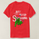 En gullig tecknadfisk med en haj i bakgrunden med behållan för ord som "precis simmar" på enskjorta.
