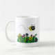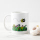 färgrika tecknadbiflys över ett ljust lappar av blommor