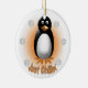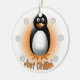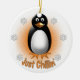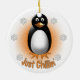 En pingvin på en orange bakgrund med snöflingor och texten "precis Chillin",
