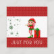 Gulliga, för klassikerhelgdagfärg presentkort för affärshelgdagbefordringar, helgdaganställdbelöningar och presentartiklar Front för beställaregillandevinter har rött, och vitschweizare pricker mönster på bästa och nedersta. Mittet har moderna hängande gröna snöflingorprydnadar och spridd stjärnor och snöflingor med röd en gullig älva för jul iklädd och grön benägenhet på en stor slågen in julgåva. Under det läser "PRECIS FÖR DIG". Gröntbrev på baksida med den beställnings- mallen som tillfogar information om affär. Underbar idé att sälja till kunder, för, för gulliga helgdaggåvakort. Roligt festlig affärspresentkortperfekt för affären som brännmärker för ett leksaklager, unge-släkt affär eller familjeföretag.