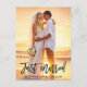 Modern Brush Script Bröllopsfoto Precis Gift Postkort