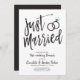 Efter den stora dagen och då ringarna är utbytta bjuder du in dina mest hedrade gäster till en morgonbrunch. Denna inbjudan har orden "just married" i finstilt skript. Mot sidan av detta finns ett par vigselringar. Under denna unika grafik finns ett utrymme för dina egna ord och information om ditt evenemang efter bröllopet. Alla delar av denna inbjudan är upplåsta och justerbara så njut av att vara kreativ och göra den till din egen.