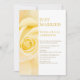 En modern bröllopsinbjudan efter vigseln med en panel med gul ros.
