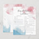 Elegant gender visar party-spelkort med vattenfärg stänk i rosa och blått med faux guld glitter. Perfekt som ska spelas under duschen och som definitivt kommer att vara en underbar keepy! Kortet ber gästerna att förutsäga vad baby-genderna skulle vara och hur de skulle se ut.